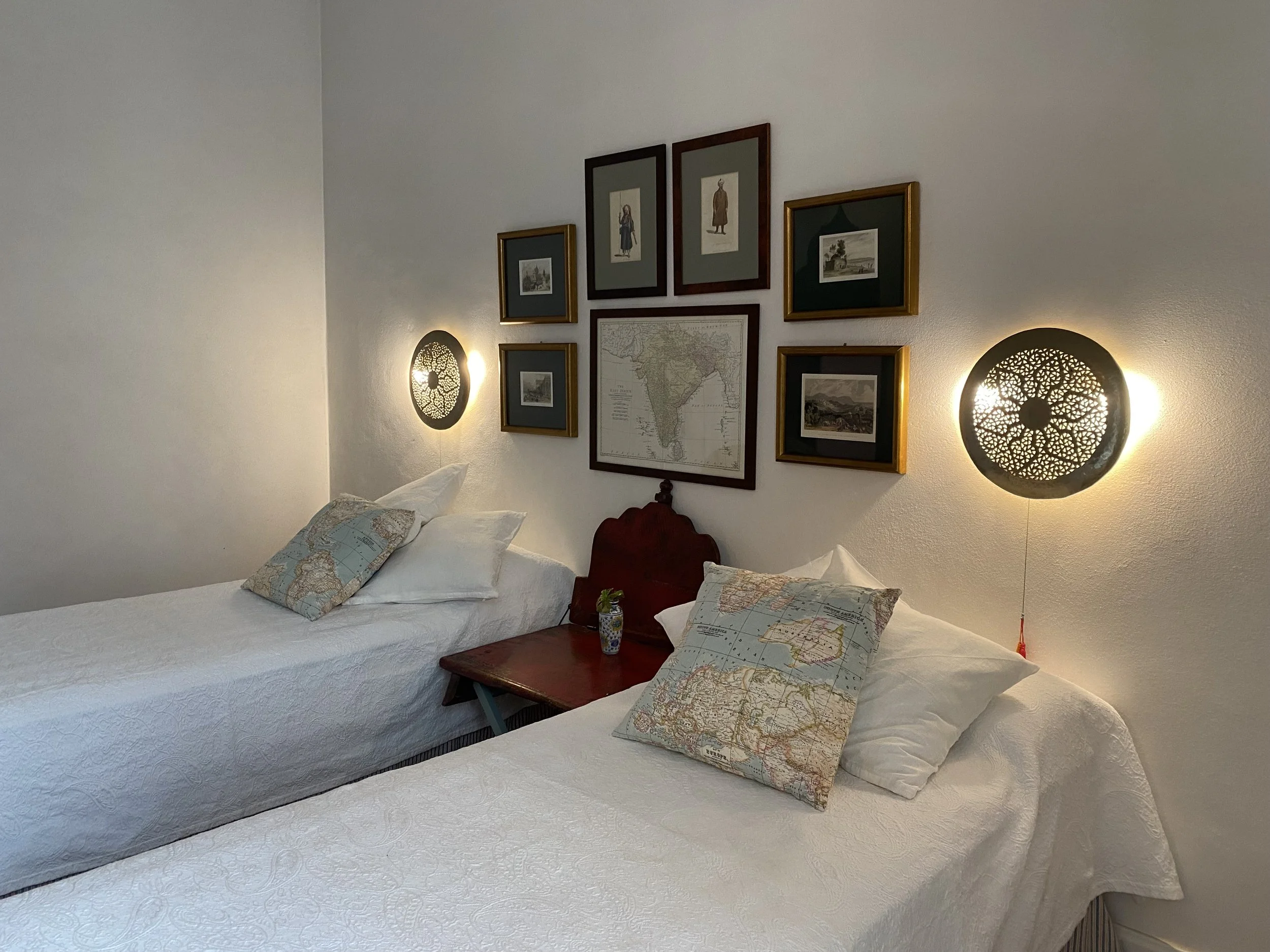 The Anglo-Indian-style room is perhaps the most spacious room of the Casa Palacio Las Marias. It’s colonial and cosmopolitan flair takes us back to the city’s splendid times of overseas commerce. It has a large dressing room with a desk/dressing table and a beautiful ensuite bathroom. The bed is a special double (1.80 x 2.00 meters). Optional: two single beds of 90x200cm.